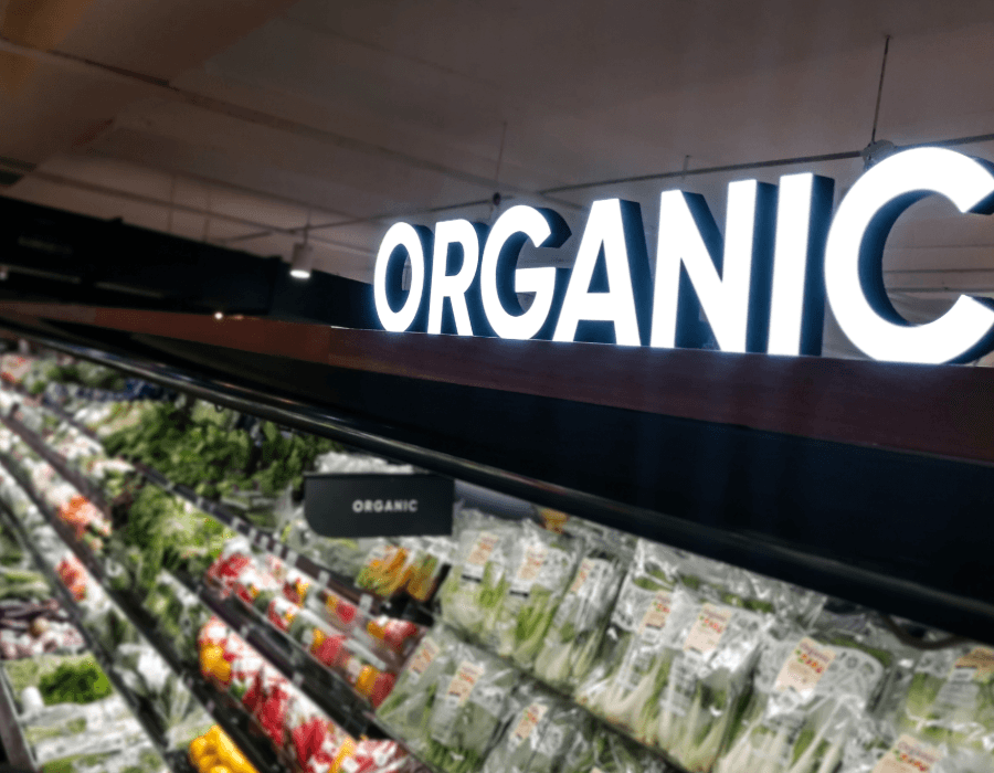 The sign does more than identify a section; it brands it. By using a clean, modern, and brightly illuminated sign, the retailer visually elevates the organic category, subconsciously communicating its premium quality, health benefits, and value to the shopper. This helps justify the typically higher price point of organic goods.