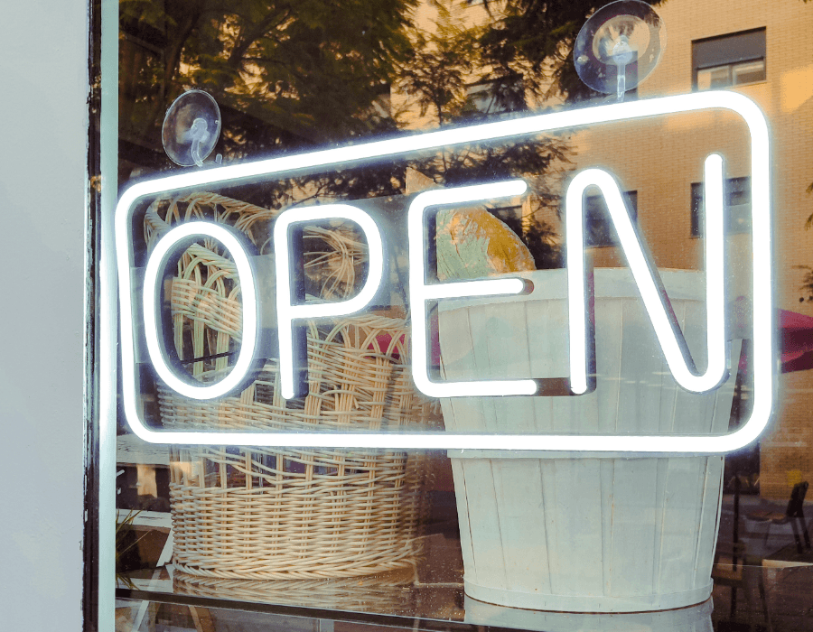 This "OPEN" sign is an excellent example of modern, effective business signage. It uses a clean aesthetic, high-visibility lighting, and simple messaging to perform its primary function: attracting customers by clearly indicating the business is open. Its design choices project an image of a contemporary, clean, and welcoming establishment.