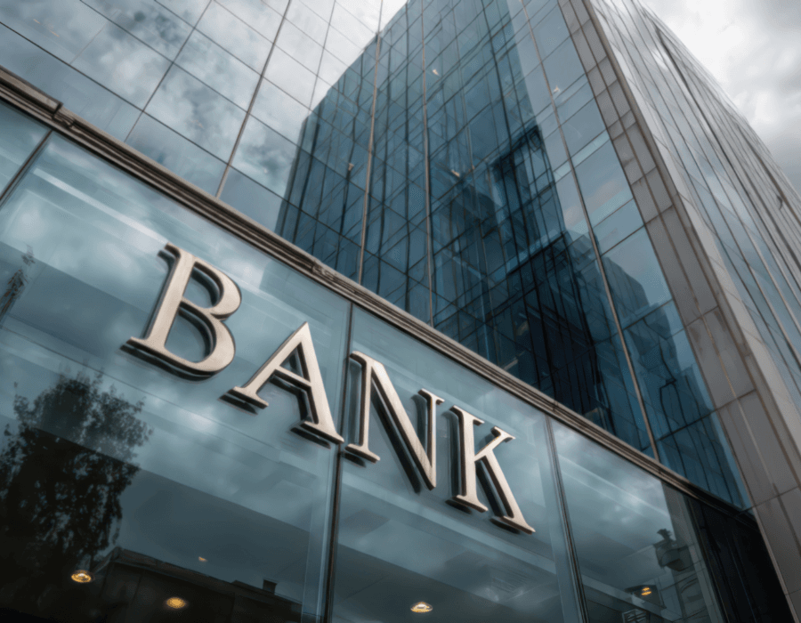 The letters are crafted from a metal with a brushed or satin finish, likely bronze, brass, or anodized aluminum. The finish is not highly reflective or flashy but has a sophisticated, muted sheen that catches the light elegantly. Very large, commanding attention without overwhelming the architecture. They are placed prominently above what appears to be the main entrance, integrated directly into the building's structure.